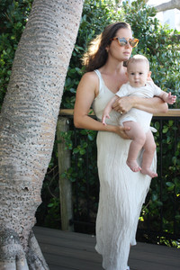 Anita wears the Gypsy dress in stone, crinkle linen.